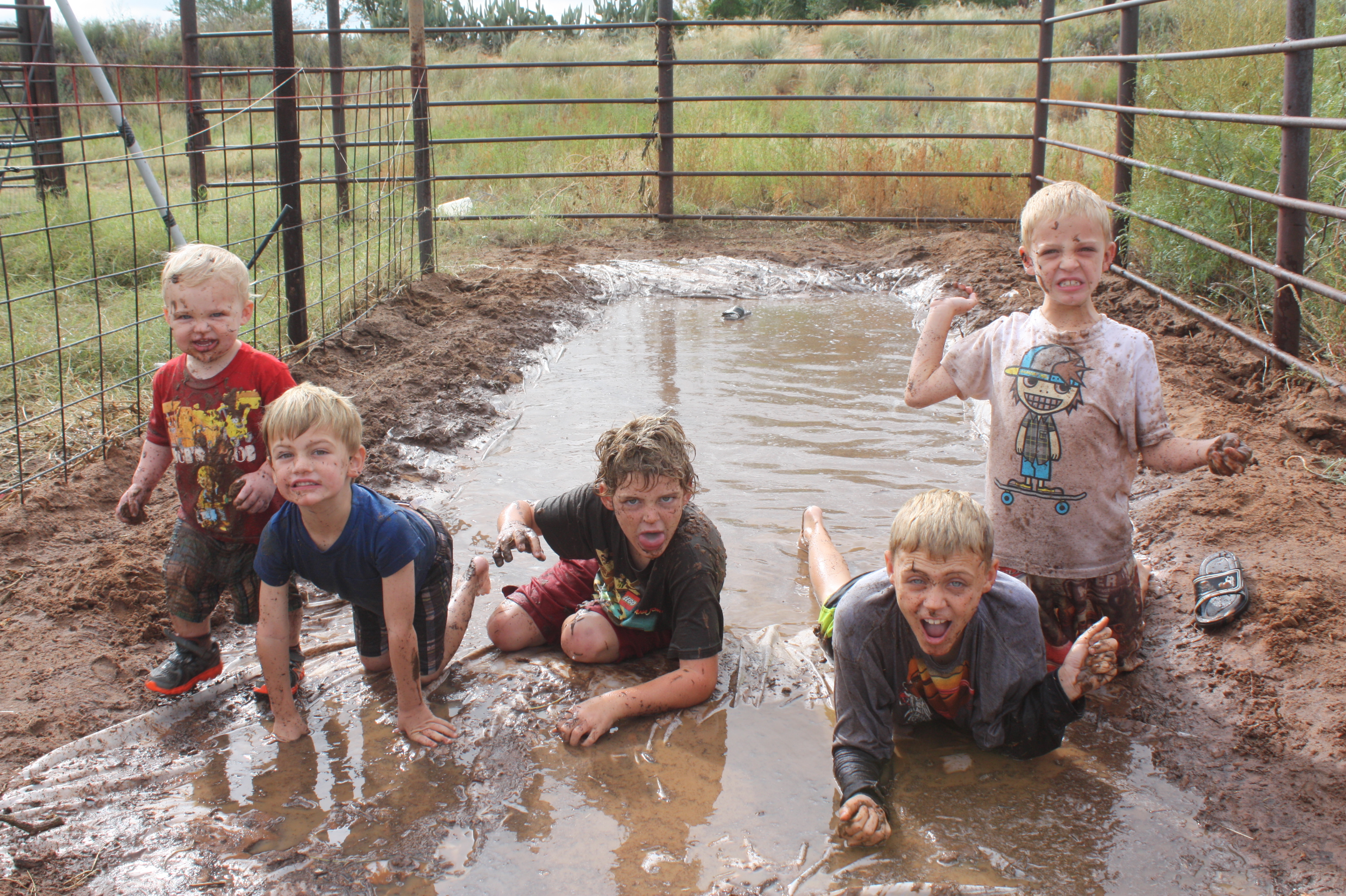 — Entertainment comes in many forms other than something that must be plugged-in. Having a catapult contest with contraptions made from Lincoln Logs and rubber bands is awesome — as is packing five giggling boys into a four by two foot horse trough to “swim”, intense Knockout games in basketball, impromptu talent shows, and seeing who can be bitten and whiskered all over their belly without even cracking a smile.
